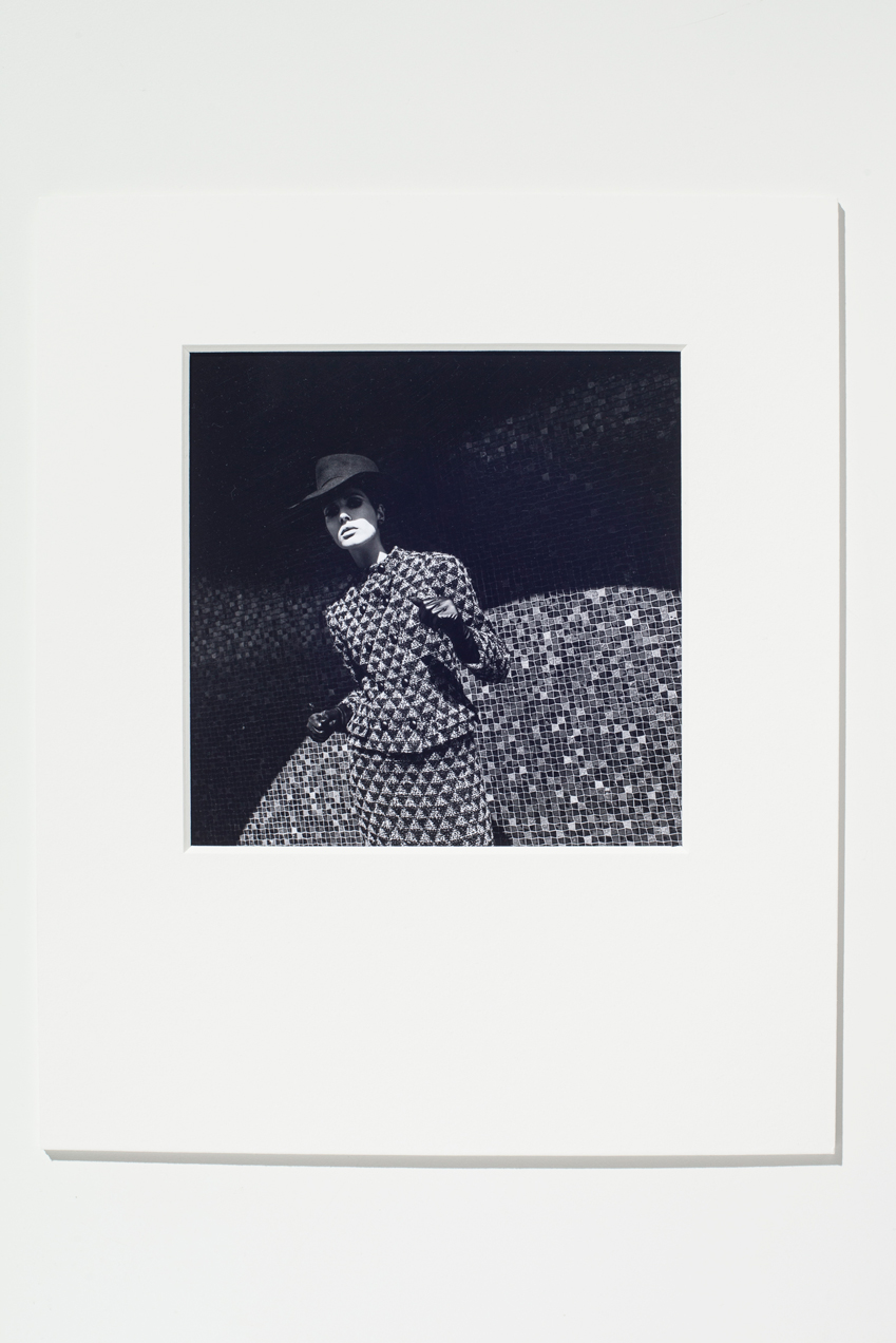 ‘In a 1965 shoot for Elle, a gamine model in graphic patterned suit by Dior, leather gloves and fedora is caught in a dramatic arc of light against a mosaic wall. The model appears defiant, punching the air, glaring at the lens and delivering what is now known as “attitude”, but back then would have appeared threatening, radical.’ — Harriet Quick, Observer