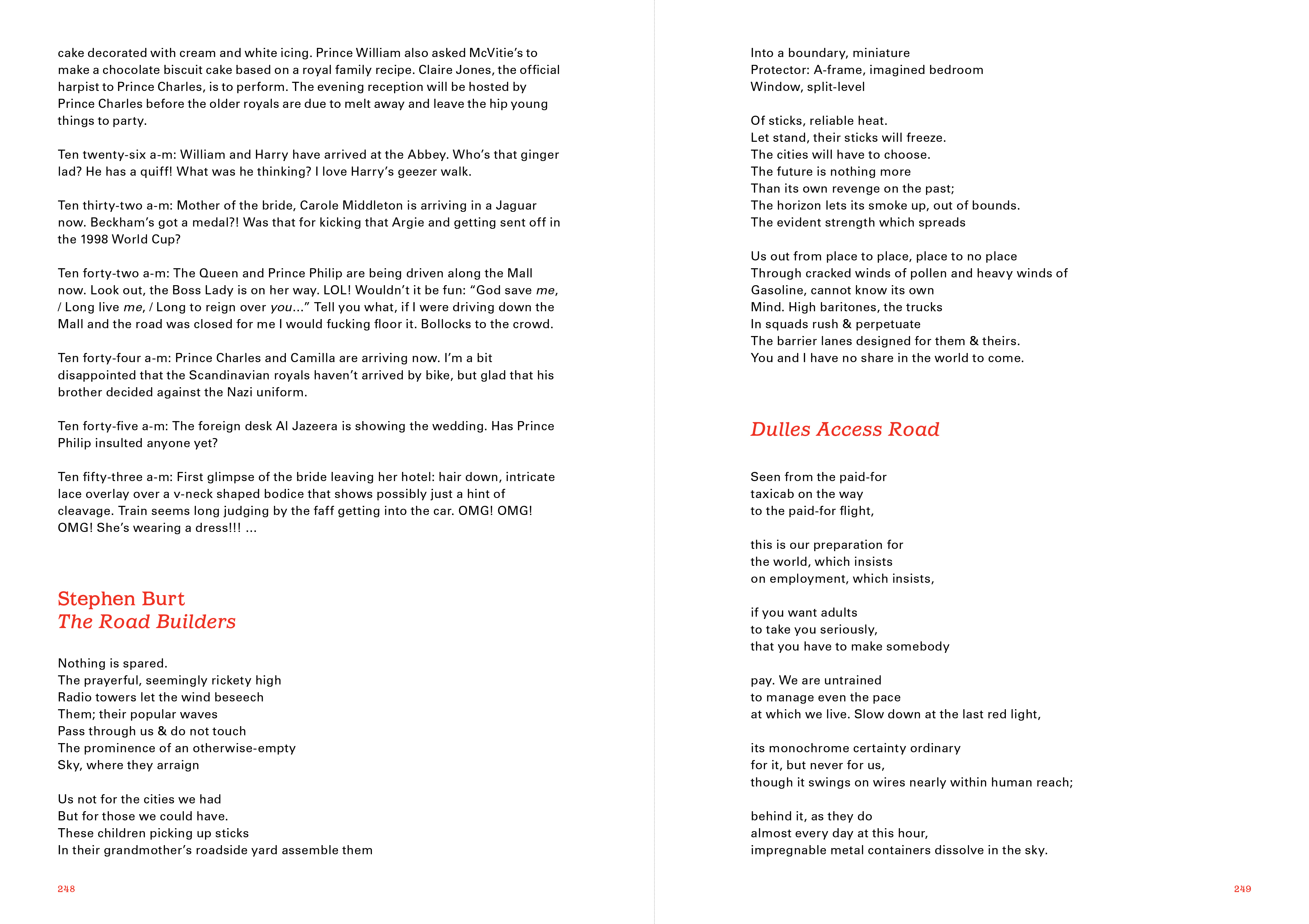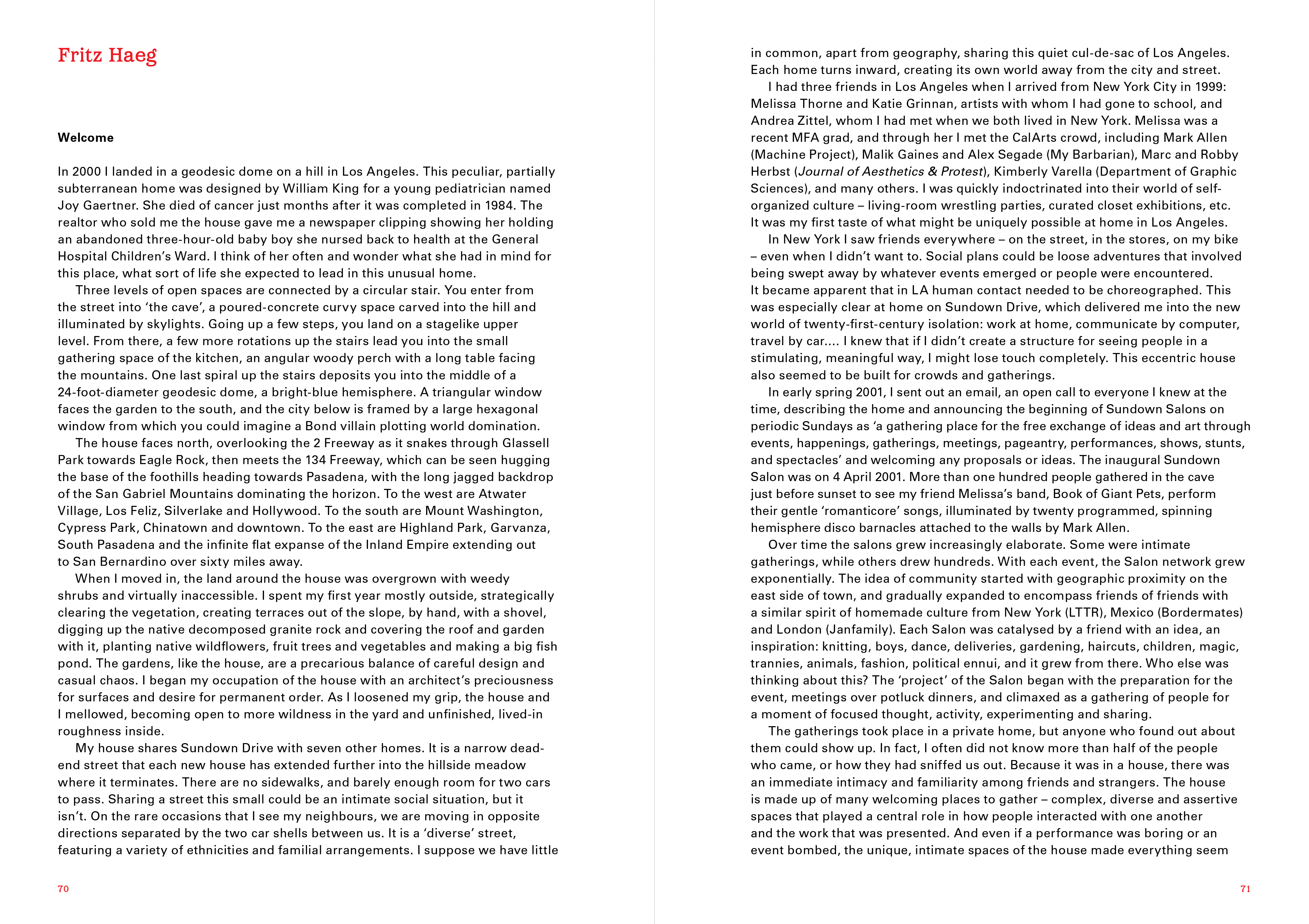 Artists have been invited to make a contribution that reflects upon a particular aspect of hospitality, or to invite a guest to occupy their space. In an extraordinary collection of new writing, Kenneth Goldsmith has invited twenty-nine fellow poets to compose works on two key areas of relevance to the subject: technology and geography. Commissioned essays by leading scholars from Africa, the Americas, Europe and Asia consider hospitality from multiple perspectives, including colonial history, spatial politics and the ethics of the host–guest relationship.