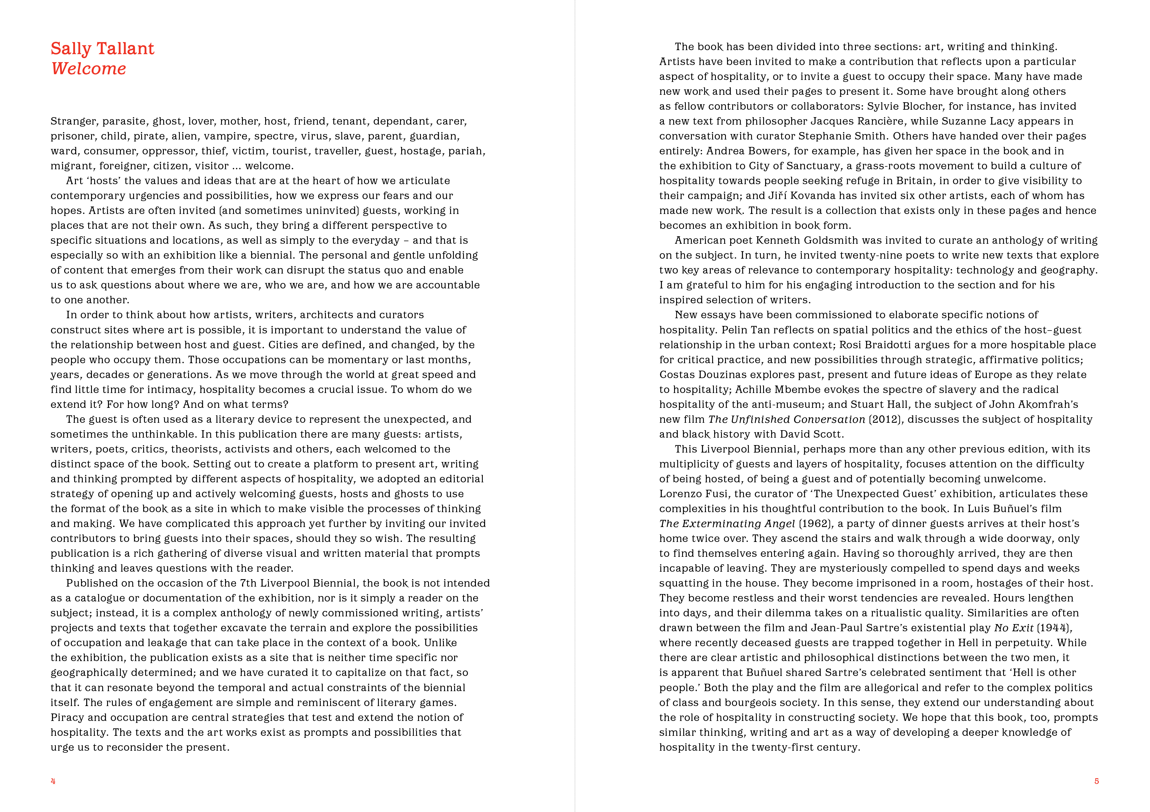 Published on the occasion of the 7th Liverpool Biennial, The Unexpected Guest welcomes and gives home to an array of artists, writers and thinkers from the four corners of the globe. It is not intended as a catalogue of the exhibition, nor is it simply a reader on the subject. Instead, it is a complex anthology of newly commissioned writing, artists’ projects and creative texts that explore one of the most pressing issues of our time.