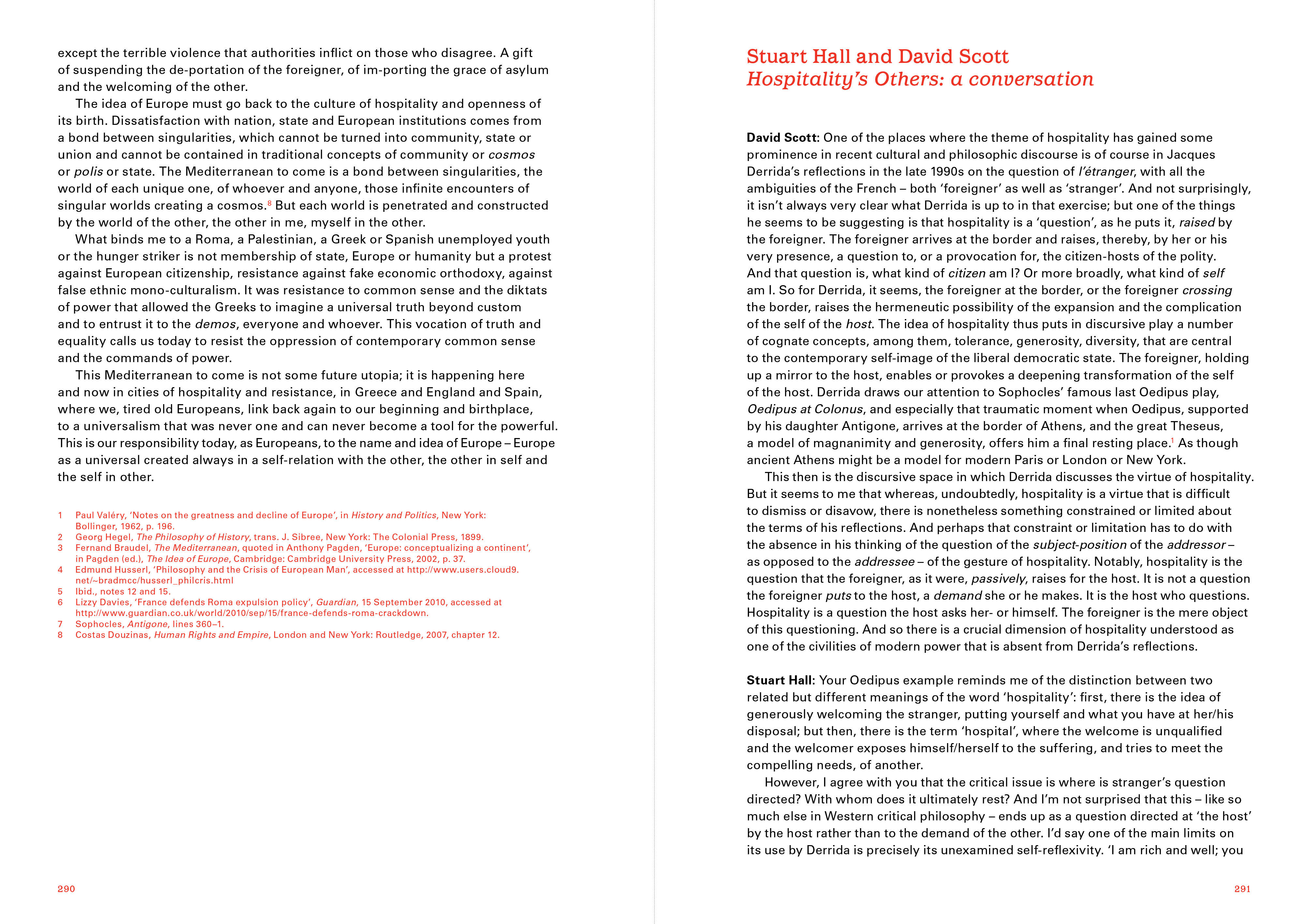 Rosi Braidotti • Costas Douzinas • Stuart Hall and David Scott • Achille Mbembe • Pelin Tan
