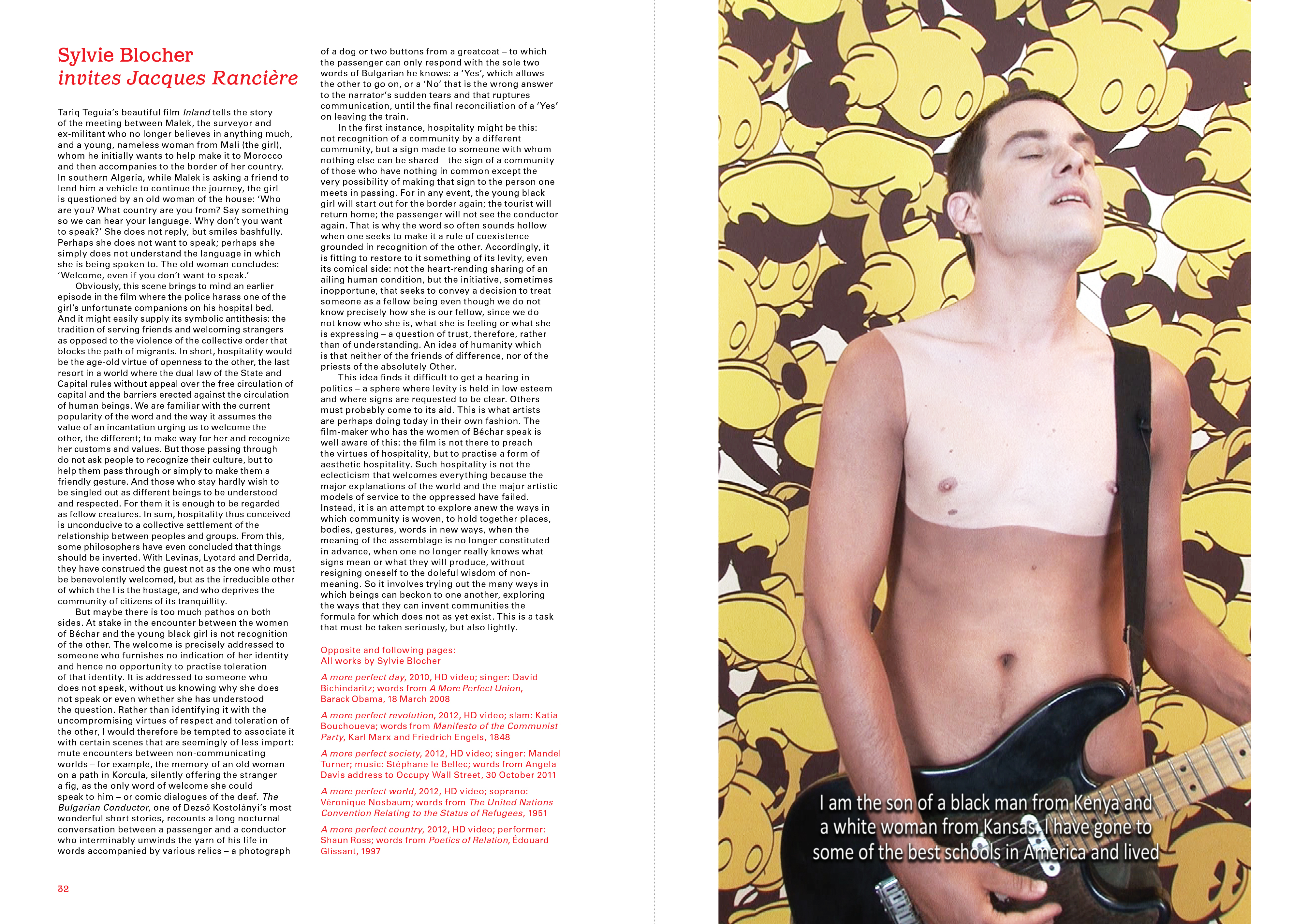Doug Aitken • John Akomfrah • Janine Antoni • Sylvie Blocher invites Jacques Rancière • Andrea Bowers • Libia Castro and Ólafur Ólafsson • Enrico David • Elmgreen and Dragset • Dora Garcia • Dan Graham • Mona Hatoum • Fritz Haeg • Jeanne van Heeswijk • Oded Hirsch • Hsieh Ying-chun • Nadia Kaabi-Linke • Markus Kahre • Anja Kirschner and David Panos • Jakob Kolding • Jirí Kovanda invites … • Suzanne Lacy and Stephanie Smith • Runo Lagomarsino • Jorge Macchi • Dane Mitchell • Sabelo Mlangeni • Mark Morrisroe • Patrick Murphy • Ahmet Öğüt • Trevor Paglen • Christodoulos Panayiotou • Pedro Reyes • Pamela Rosenkranz • Mikhael Subotzky and Patrick Waterhouse • Sun Xun • Superflex • Sinta Tantra • Tate Liverpool • Althea Thauberger • Jose Angel Vincench • Ming Wong • Jemima Wyman • Kohei Yoshiyuki • Akram Zaatari